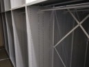 Мы спроектировали, изготовили и поставили две системы передвижных металлических стеллажей: мобильные стеллажи с ячейками — для сложенной одежды. Каждая ячейка соответствует отдельному артикулу, что позволяет организовать адресное хранение и ускорить поиск. И мобильные стеллажи со штангами — для развески одежды. Размеры отсеков и штанг выверены под габариты хранимой формы, чтобы избежать сминания, перекосов и износа.