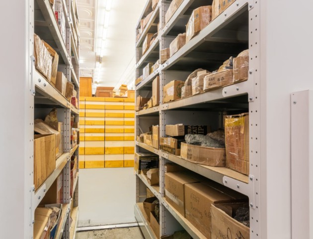 Закрытое хранение гербария в стеллажах с ячейками и дверями
