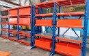 На основе стеллажей с выкатными платформами мы разработали, изготовили и установили индивидуальную систему хранения, ориентируясь на характеристики разных типов оснастки. Были использованы стеллажи серии SLIDE, адаптированные по нагрузке и формату. SLIDE с полным выдвижением полок, нагрузка на полку до 1400 кг — для тяжёлой производственной оснастки. SLIDE с частичным выдвижением, до 1000 кг — для среднегрузовых компонентов. SLIDE с полным выдвижением, до 200 кг с дверями и замками — для инструмента среднего веса с выкатными рамами и съёмными ящиками с разделителями. Отдельные тяжеловесные модули также дополнительно оснащены ящиками для мелочей.