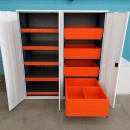 Закрытые системы хранения с выдвижными полками и ящиками обеспечивают надежную защиту от производственной пыли и загрязнений. Доступ к содержимому можно дополнительно защищать с помощью дверей или рольставней, что повышает безопасность и сохраняет порядок. Такие системы повышают эргономику рабочего пространства, упрощая доступ к инструментам и материалам, а также позволяют персонализировать доступ для разных сотрудников, обеспечивая контроль и сохранность содержимого.
